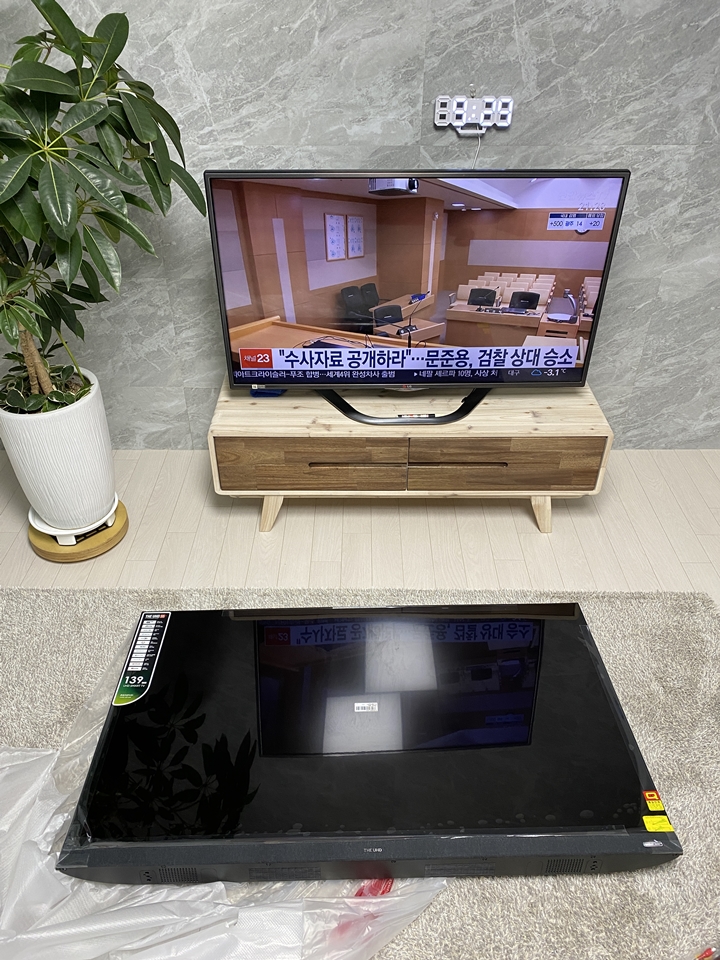 55인치는 거실장이랑 딱 맞아떨어지네요 ㅎㅎ