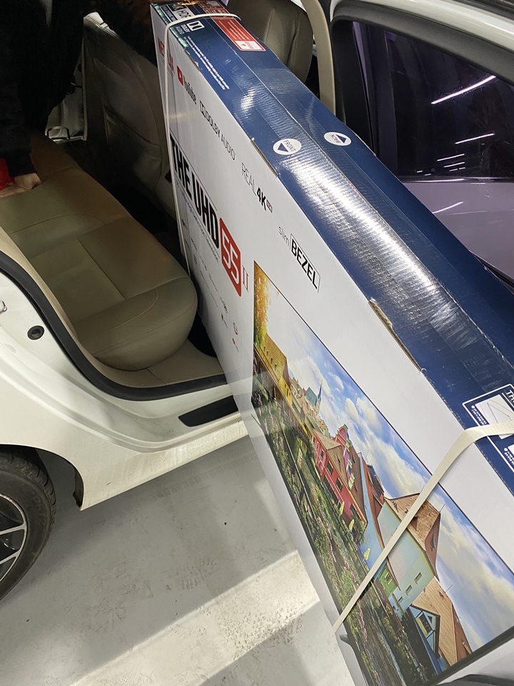우선 55인치 티비는 중형 승용차 뒷자리에