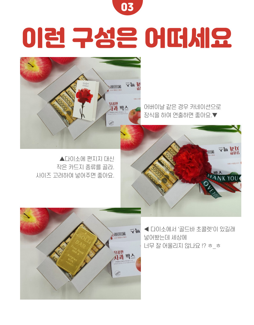 부모님선물 용돈박스 미니 사과박스 어버이날 선물 : 큐브카라멜