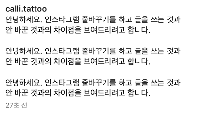 줄바꾸기를 하지 않고 인스타그램에서 글을 쓰고
