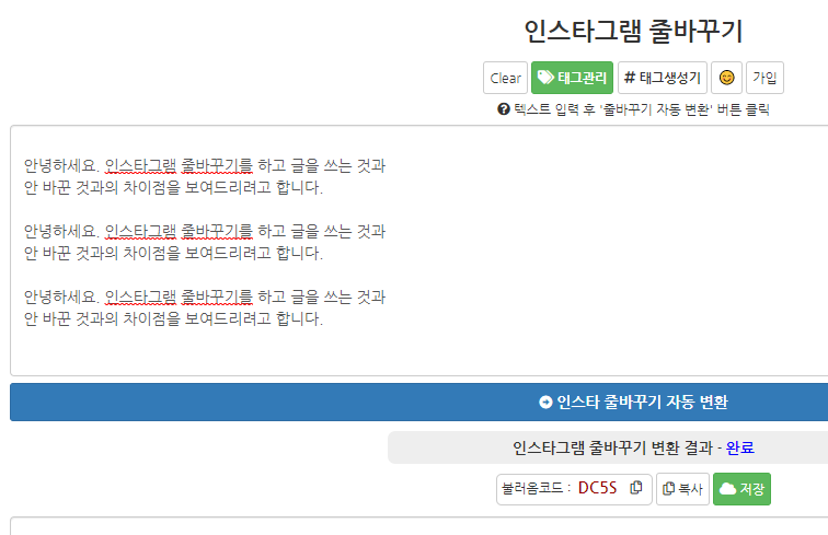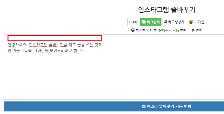 인스타그램 줄바꾸기 쉽고 빠르게 인스타 줄바꾸기 텍스트를 변환해드립니다.