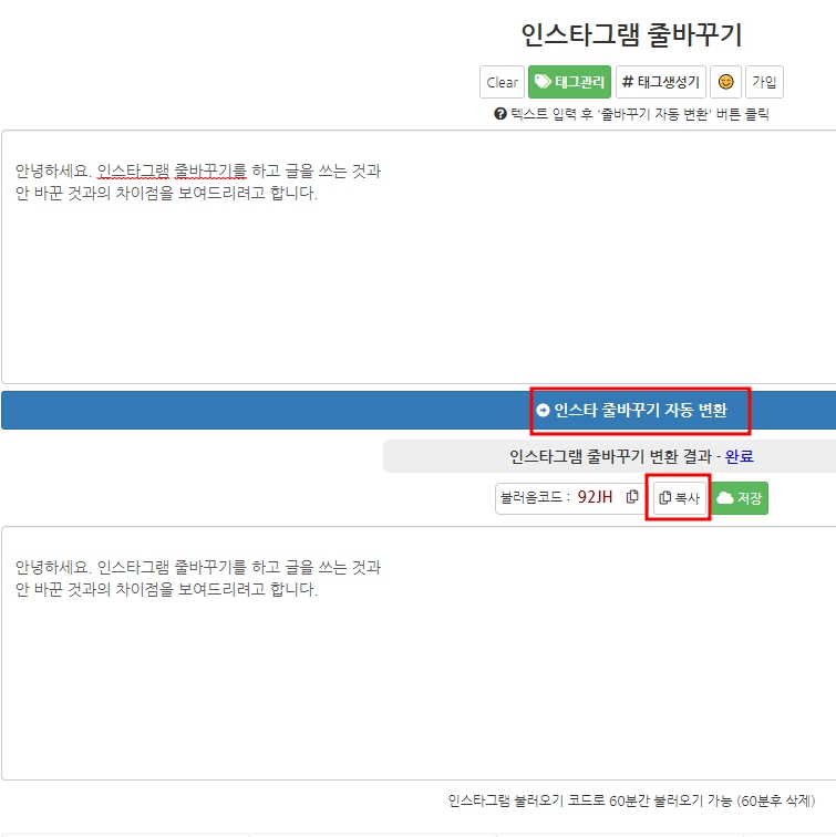 줄바꾸기 변환 후 복사 붙여넣기 해서 올리면