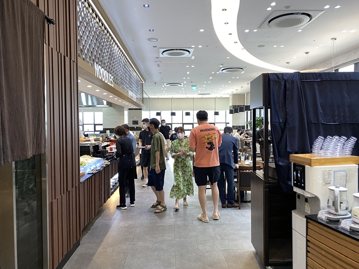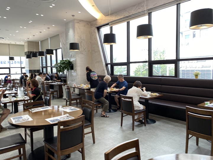 조식을 먹으러 온 투숙객들이
