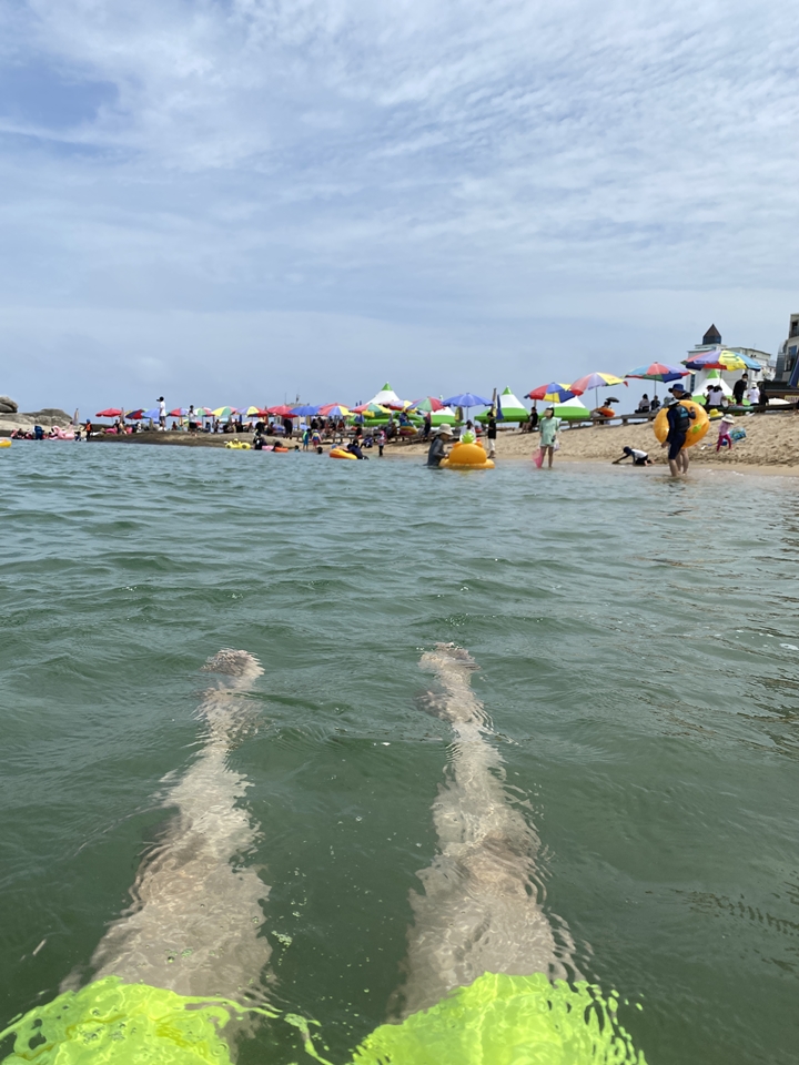 번잡스럽지 않게 바다 수영을 즐긴 후