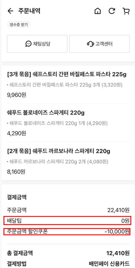 12,410원만 결제했다.
