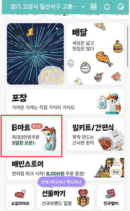 배민 B마트 할인 쿠폰 알림이 자주 오는 것 같다
