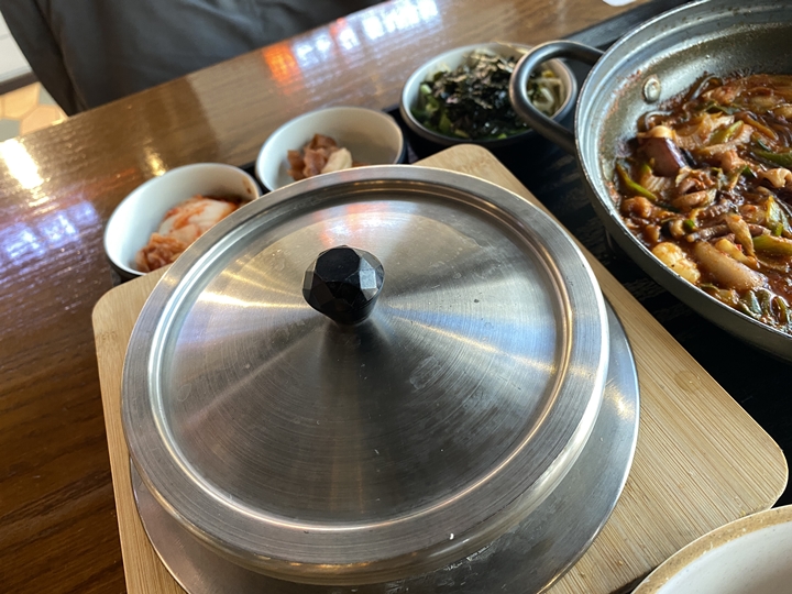 넓적한 냄비에 낙곱새가 나오고