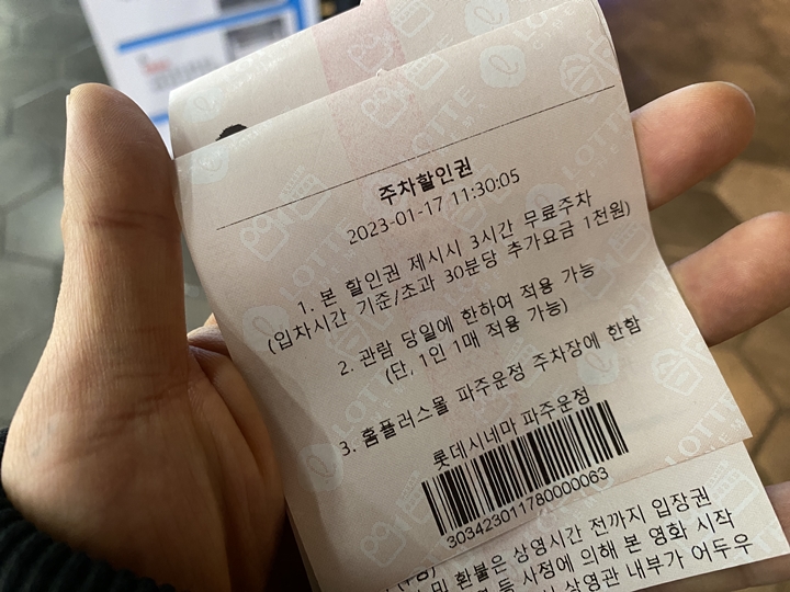 <롯데시네마 무료주차 시간>
