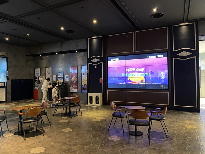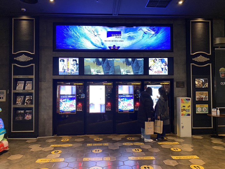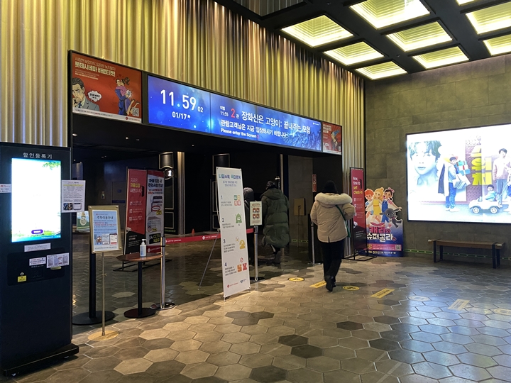 영화관 입구 왼쪽 편에 기둥 쪽에 보시면