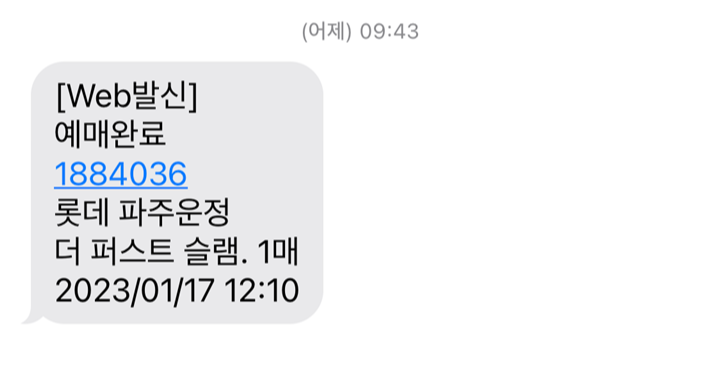 이렇게 핸드폰 문자로 예매완료 문자와 함께