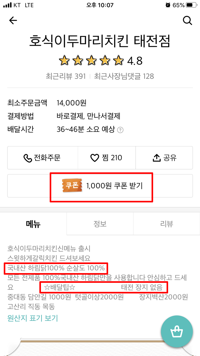 치킨 배달 시켜먹은 후기를 남기려고 합니다!