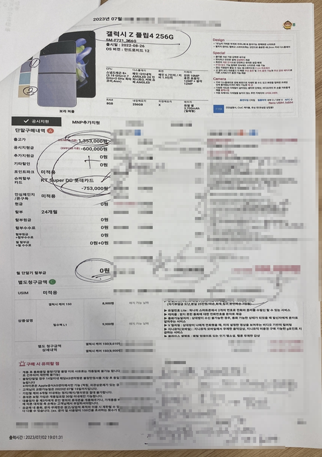 우선 어머니는 이번에 삼성 갤럭시 z플립4 256기가를 구매하셨습니다