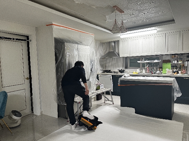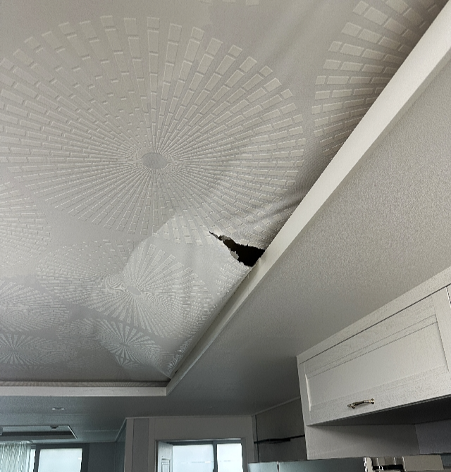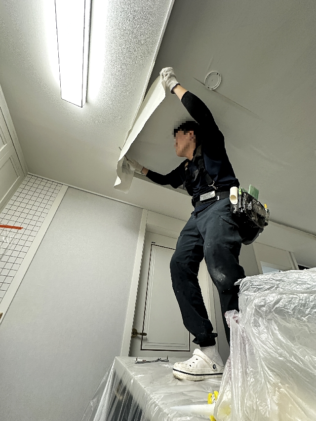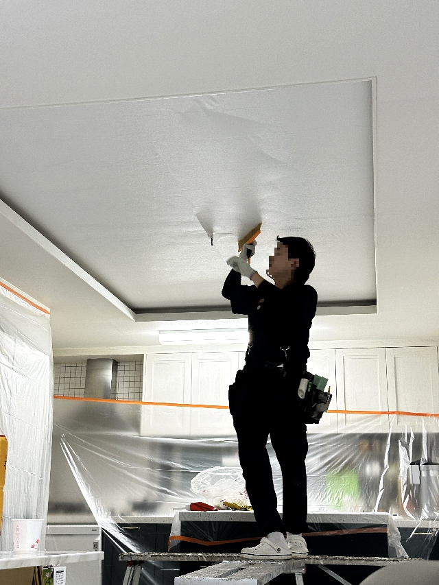 어느덧 한 달이 지나 천장 누수 도배 작업을 진행했습니다
