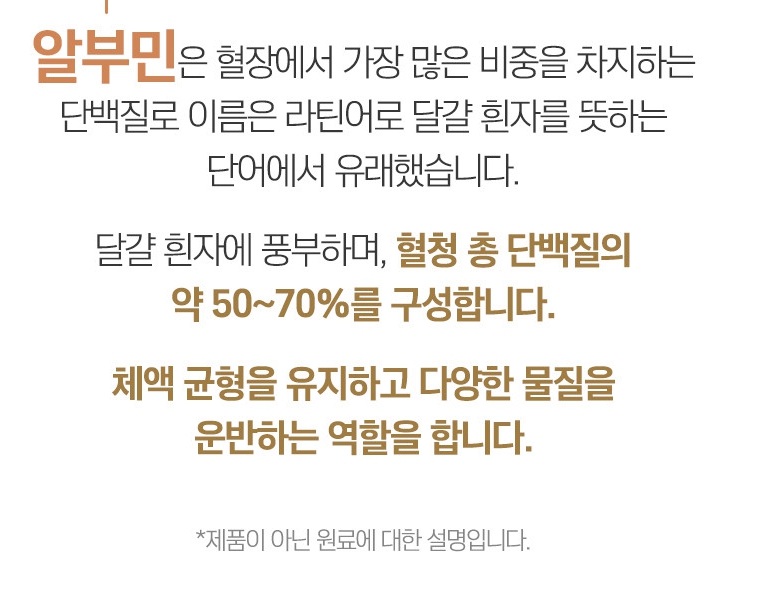 <간 건강 관리> 알부민은 간에서 합성되므로 간 기능 저하와도 밀접한 관련이 있습니다.