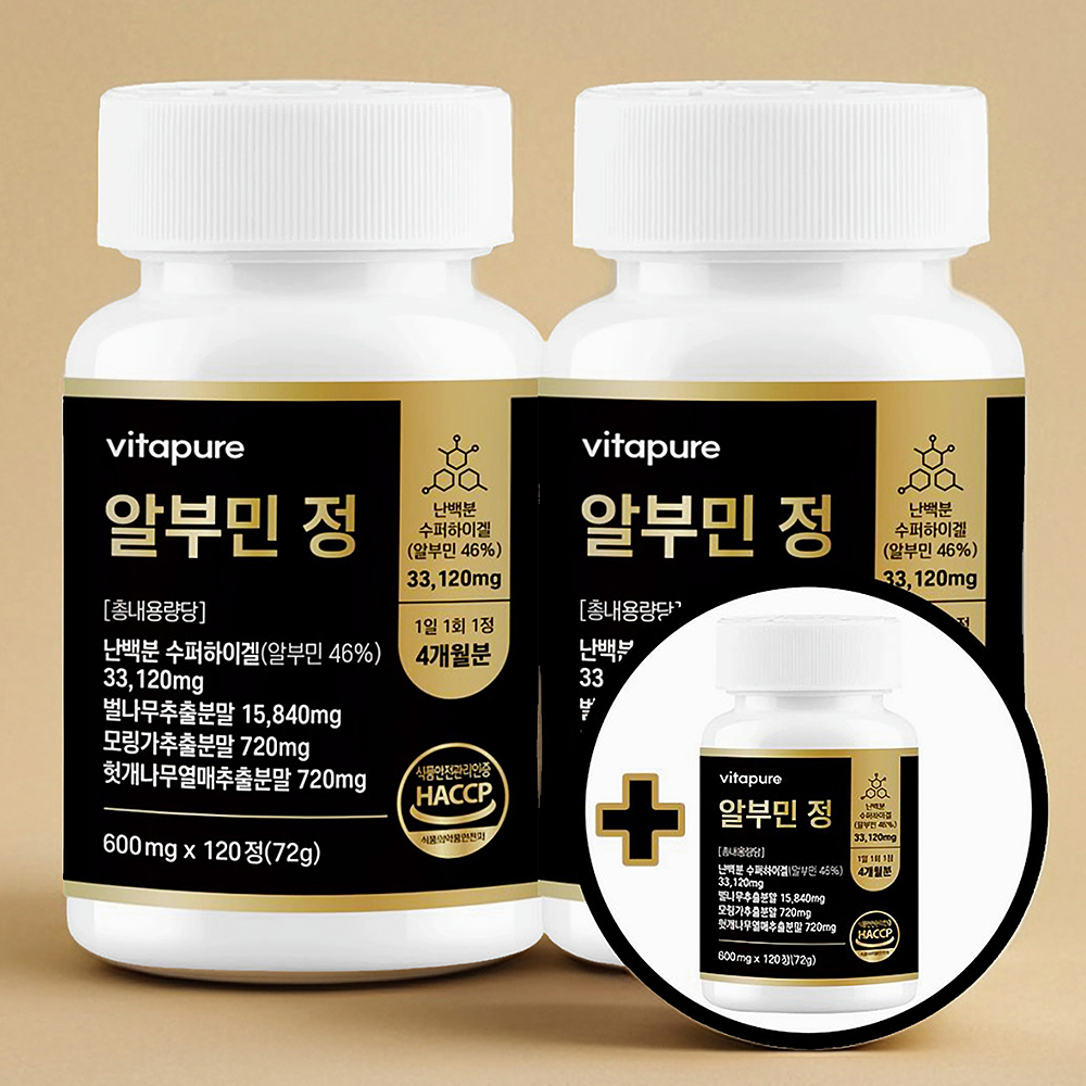프리미엄 먹는 알부민 고함량 효능 120 정 3통 12개월분 : 비타퓨어 vitapure