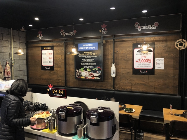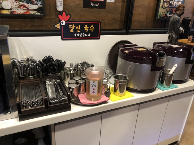 육수를 넣고 닭고기를 철판에 구워줍니다