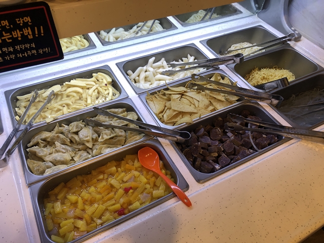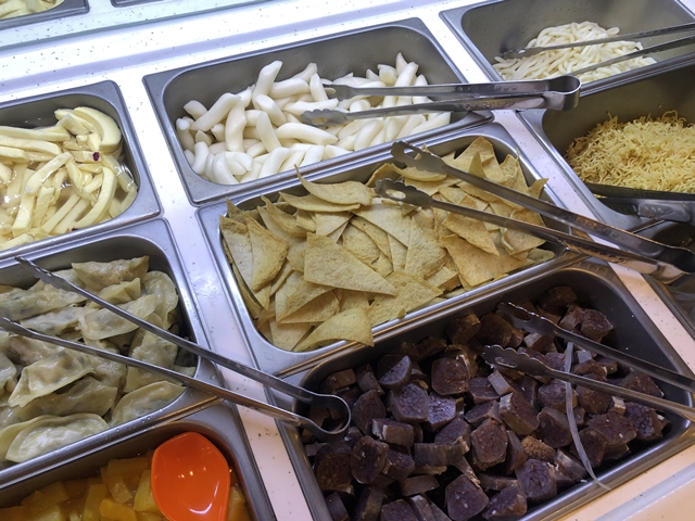 채소류와 햄, 순대, 떡, 고구마, 만두
