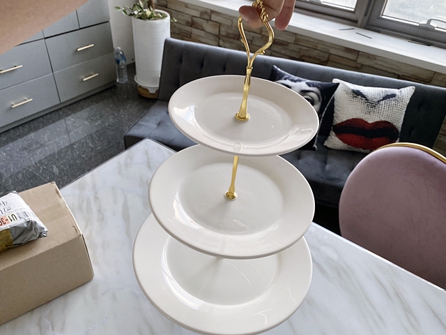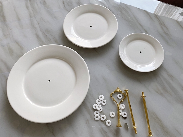 3단 디저트 접시의 구성품은 간단합니다