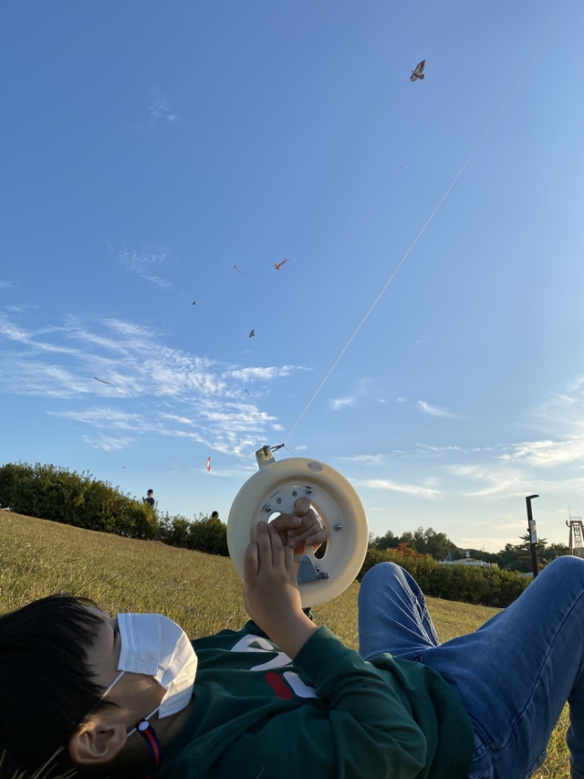 줄을 풀어주니 점점 하늘 위로 연이 잘 날아갔습니다