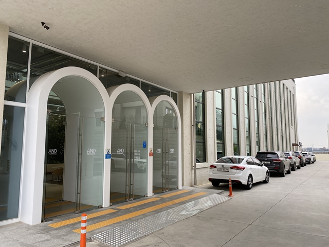 건물이 연한 회색빛 톤으로 깔끔하게 돼있고