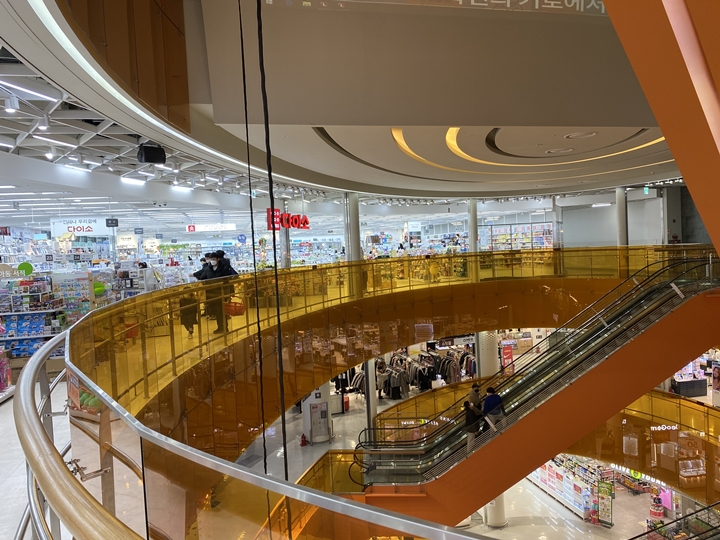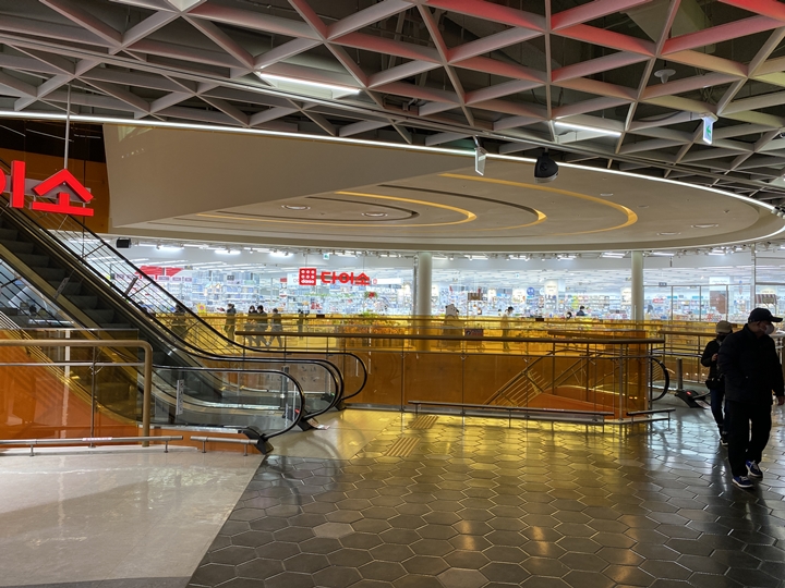 중앙의 에스컬레이터 주변으로 원형 구조로